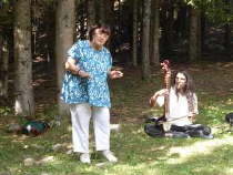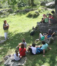 Nous nous arrêtons plus longuement: le public est invité à s'asseoir,à s'allonger...selon son envie...et c'est le temps des contes, un départ vers des contrées imaginaires, des voyages intérieurs...